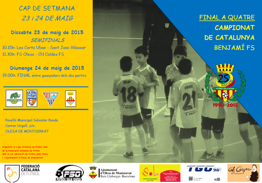 El Benjamí "A" del Futbol Sala Olesa es queda a les portes de classificar-se pel Campionat d'Espanya després de perdre la final del Campionat de Catalunya per un ajustat 0-1 amb el Sant Joan de Vilassar FS. Malgrat la derrota estem molt contents i orgullosos amb el gran treball que ha realitzat aquest equip durant tota la temporada.