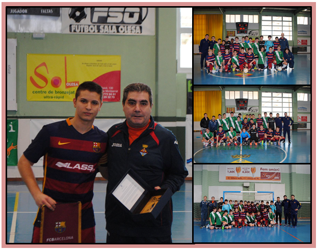 "Aprofitant la celebració de les Jornades de Tecnificació de Futbol Sala, aquest diumenge 27 de desembre, les quals s’han dut a terme en el Pavelló Salvador Boada, d’Olesa de Montserrat, la LCFS ha volgut homenatjar al club de la localitat pel seu aniversari.