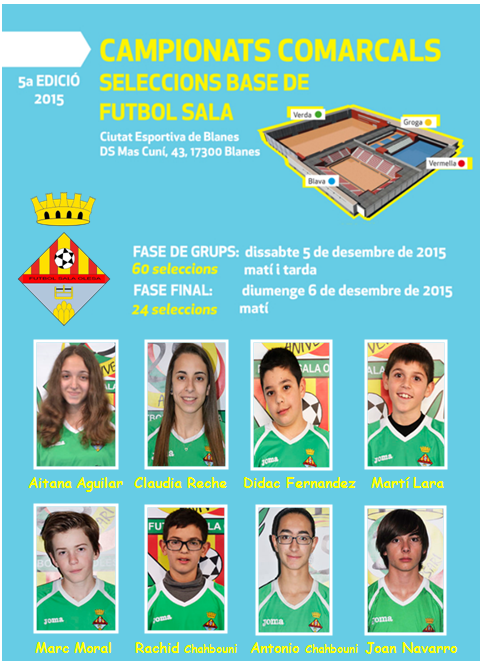 UN TOTAL DE 8 JUGADORS/ES DE LA NOSTRA ENTITAT PARTICIPARAN AL CAMPIONAT COMARCAL DE SELECCIONS BASE DE FUTBOL SALA A BLANES AQUEST CAP DE SETMANA!!!
