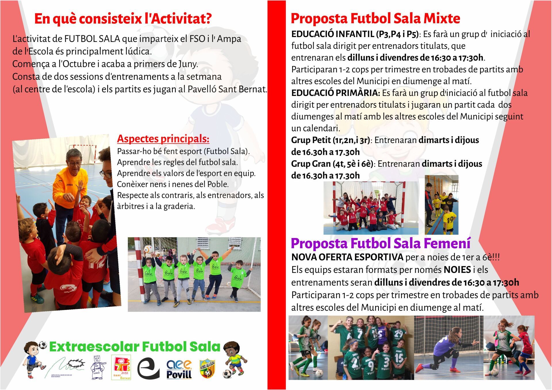 - FUTBOL SALA FEMENÍ: Dilluns i divendres de 16.30h a 17.30h