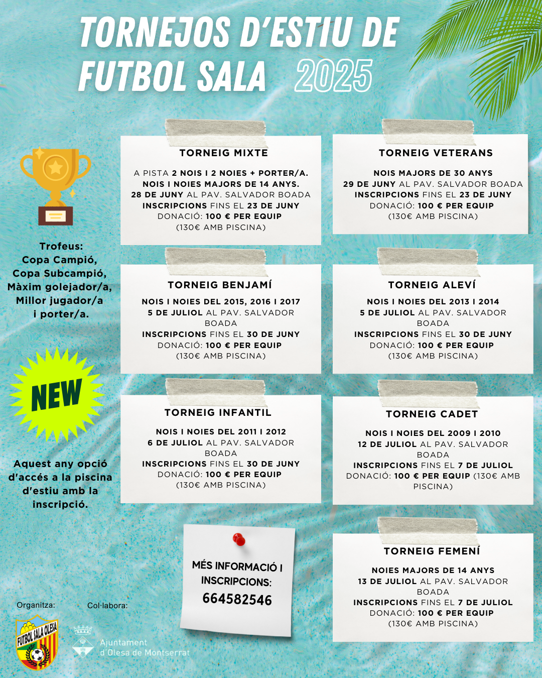 Un any més des del Futbol Sala Olesa organitzem el Torneig Femení d'Estiu.