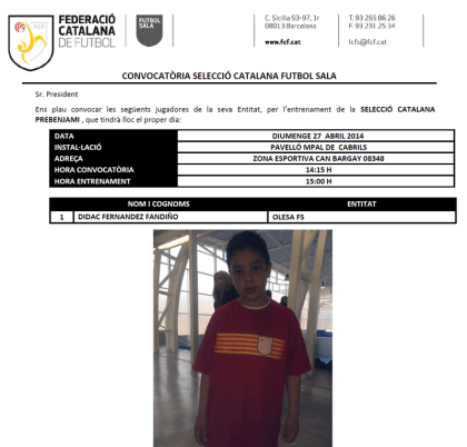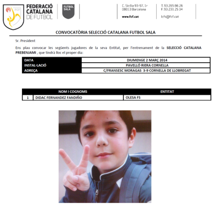 EN DIDAC FERNANDEZ, SEGUEIX FORMANT PART DE LA SELECCIÓ CATALANA PREBENJAMÍ
