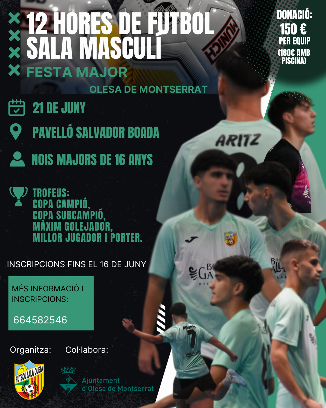 Un any més des del Futbol Sala Olesa organitzem les tradicionals 12 hores de futbol sala masculí per la Festa Major.