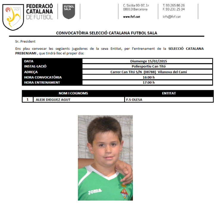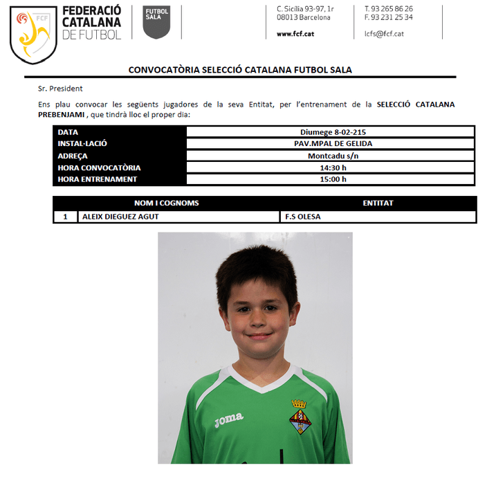 EL NOSTRE JUGADOR MARTÍ LARA PARTICIPARÀ AMB LA SELECCIÓ CATALANA BENJAMÍ AL TORNEIG INTERNACIONAL DE FUTBOL SALA CELEBRAT A PUIGCERDÀ AQUEST DISSABTE!!!