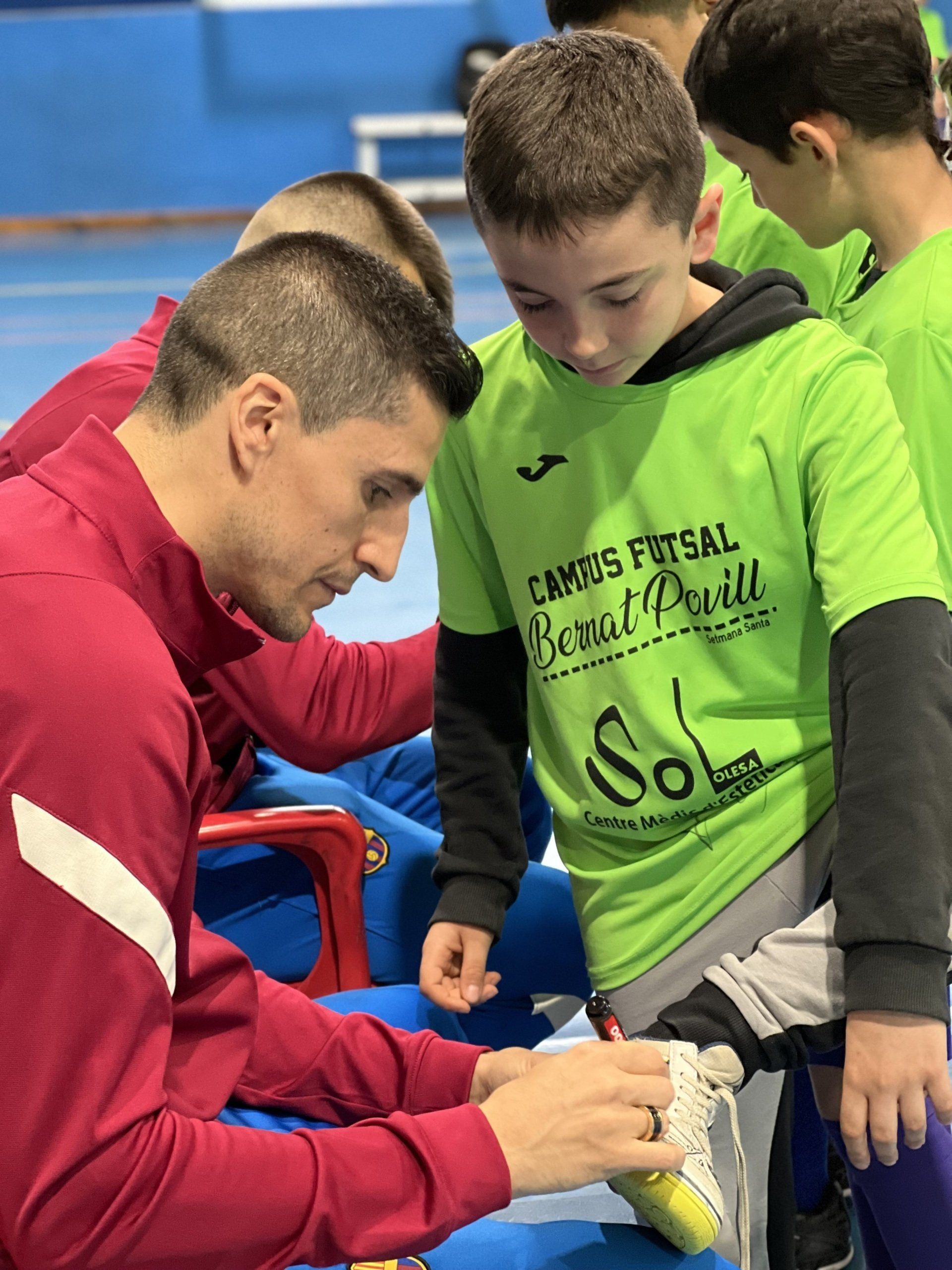 ➡️Aquest matí hem començat el campus amb moltes ganes de que arribés el tram final per la sorpresa que els teníem preparada. En Bernat Povill ens ha portat dos companys d’equip que teníem moltes ganes de conèixer, en Sergio Lozano i en Carlos Ortiz, dues llegendes del futsal espanyol que pertanyen al Barça.