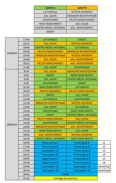 La final ha estat molt disputada entre l'equip Freshquitos i A6, i finalment ha estat Freshquitos qui s'ha imposat i ha quedat campió.