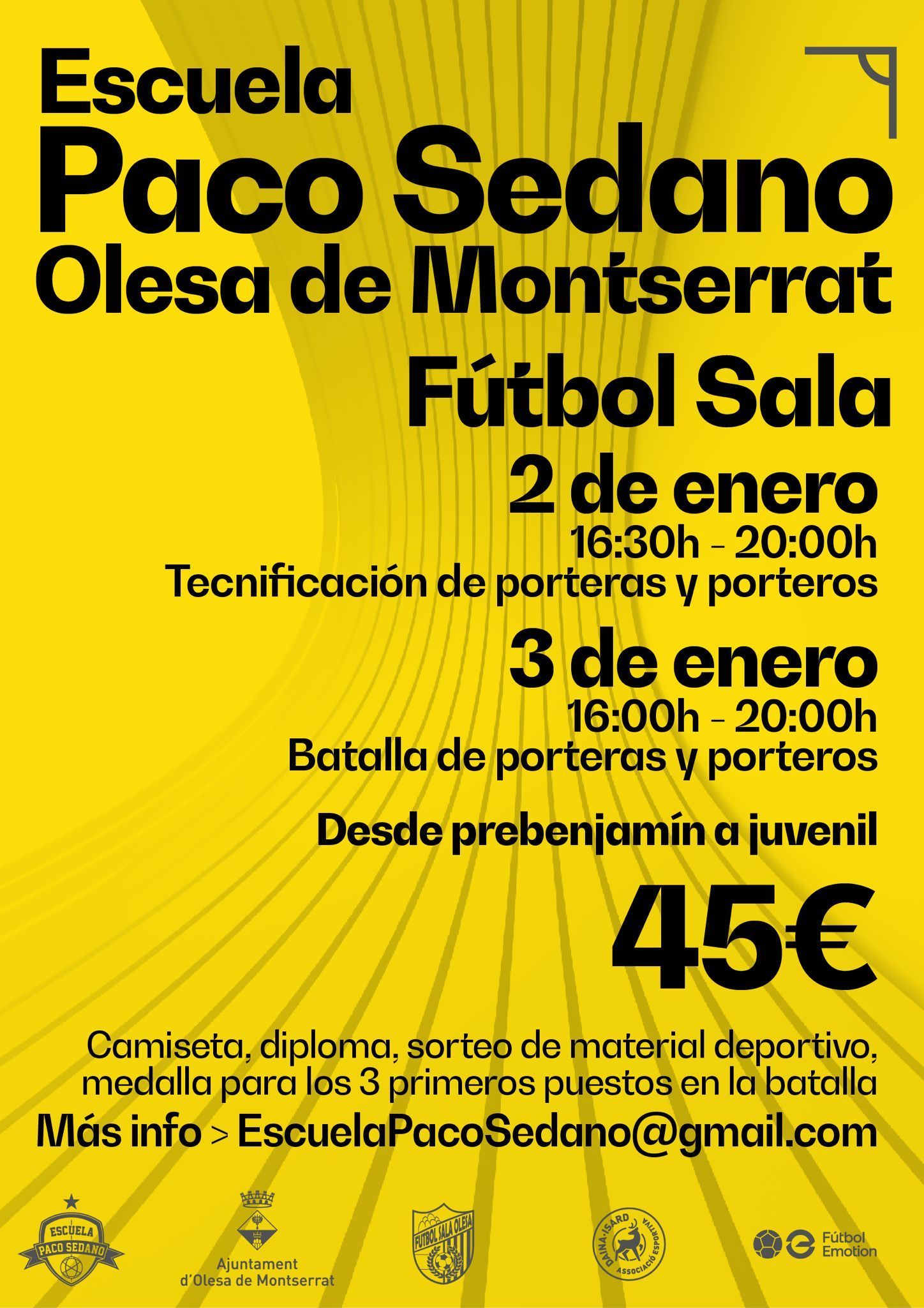 Els dies 2 i 3 de gener de 2025 ja pots gaudir d'una nova ecició del Campus de Porters de Futbol Sala organitzat per l'Escola Paco Sedano. Us hi esperem!