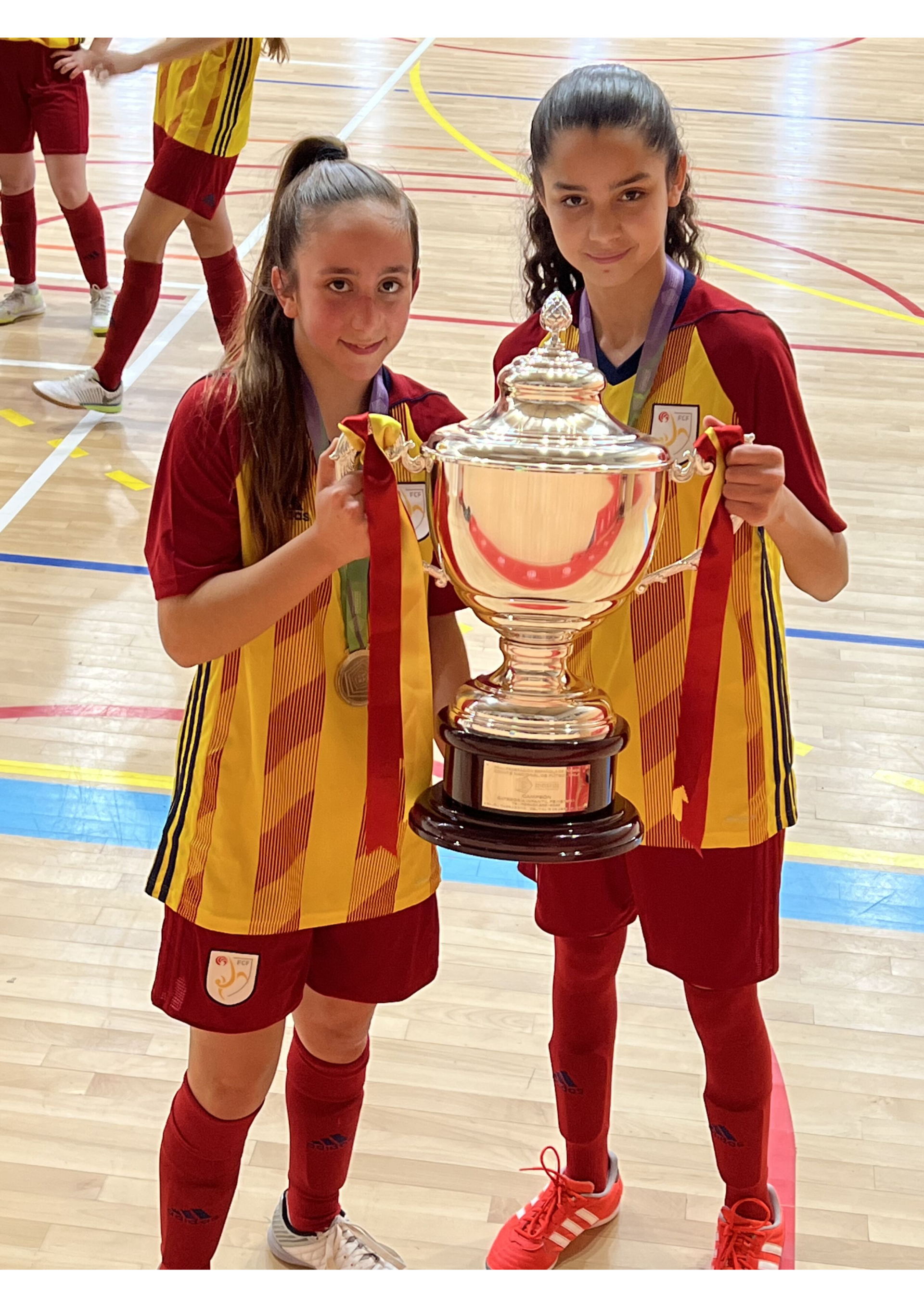 ➡️Avui l’Aroa Gonzalez @gnzaleez._ que ha col•laborat amb un gol ⚽️, i la Imane Mouhal @_mlhimane , dues jugadores infantil femení del club, s’han proclamat Campiones d’Espanya després de guanyar a la pròrroga per 4-3 a Galicia.